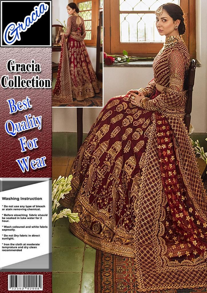 • Dupatta: Net (Fully Embroidered, 4-sided Applique with Lace & Heavy Embroidered Pallu)