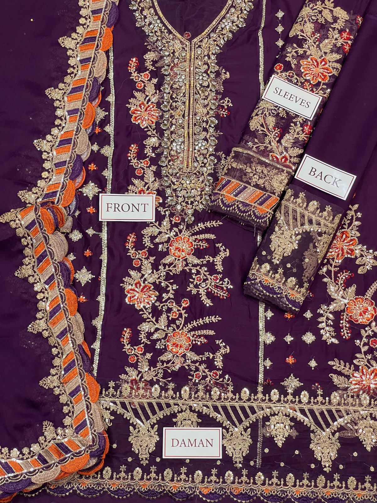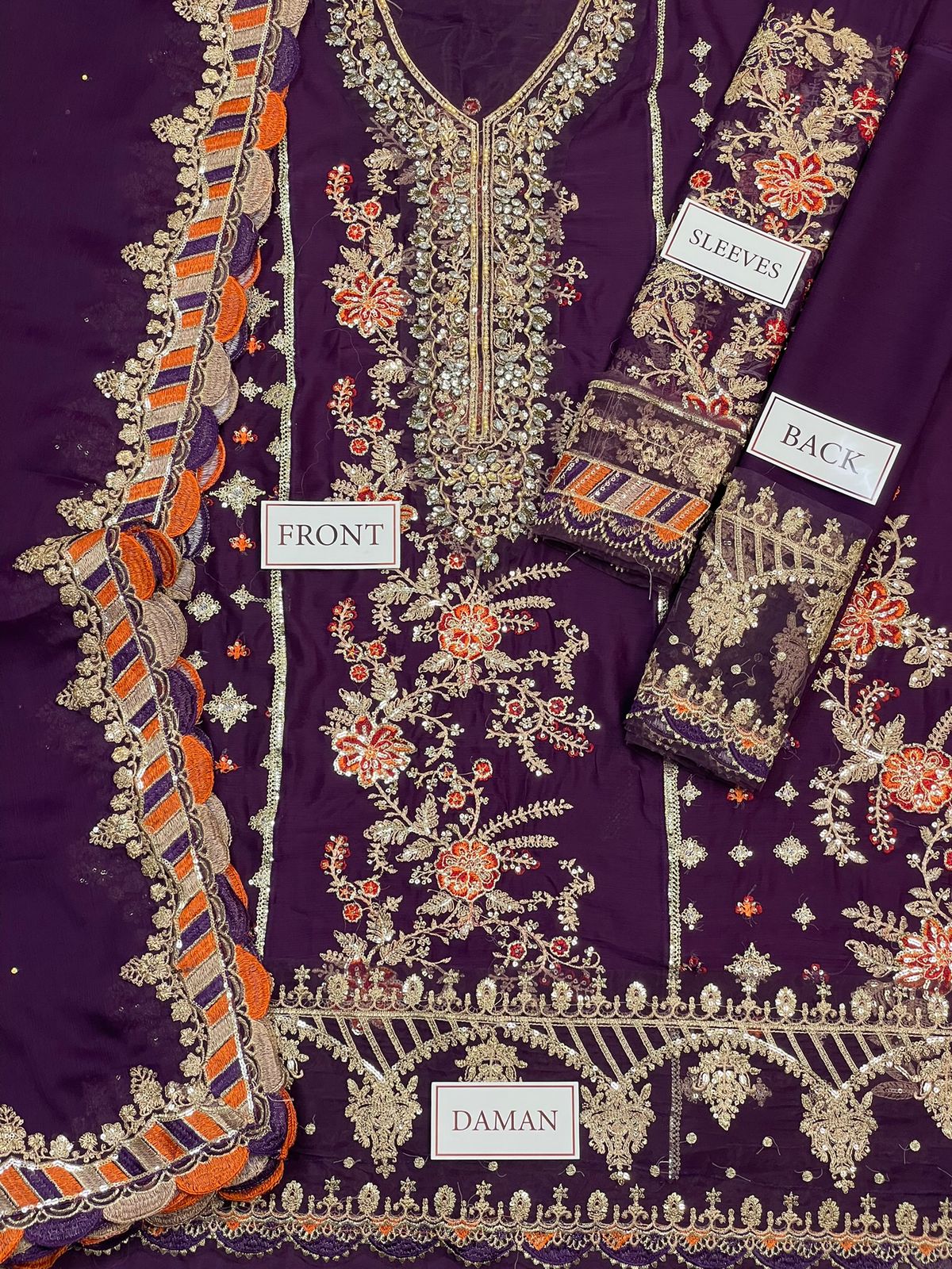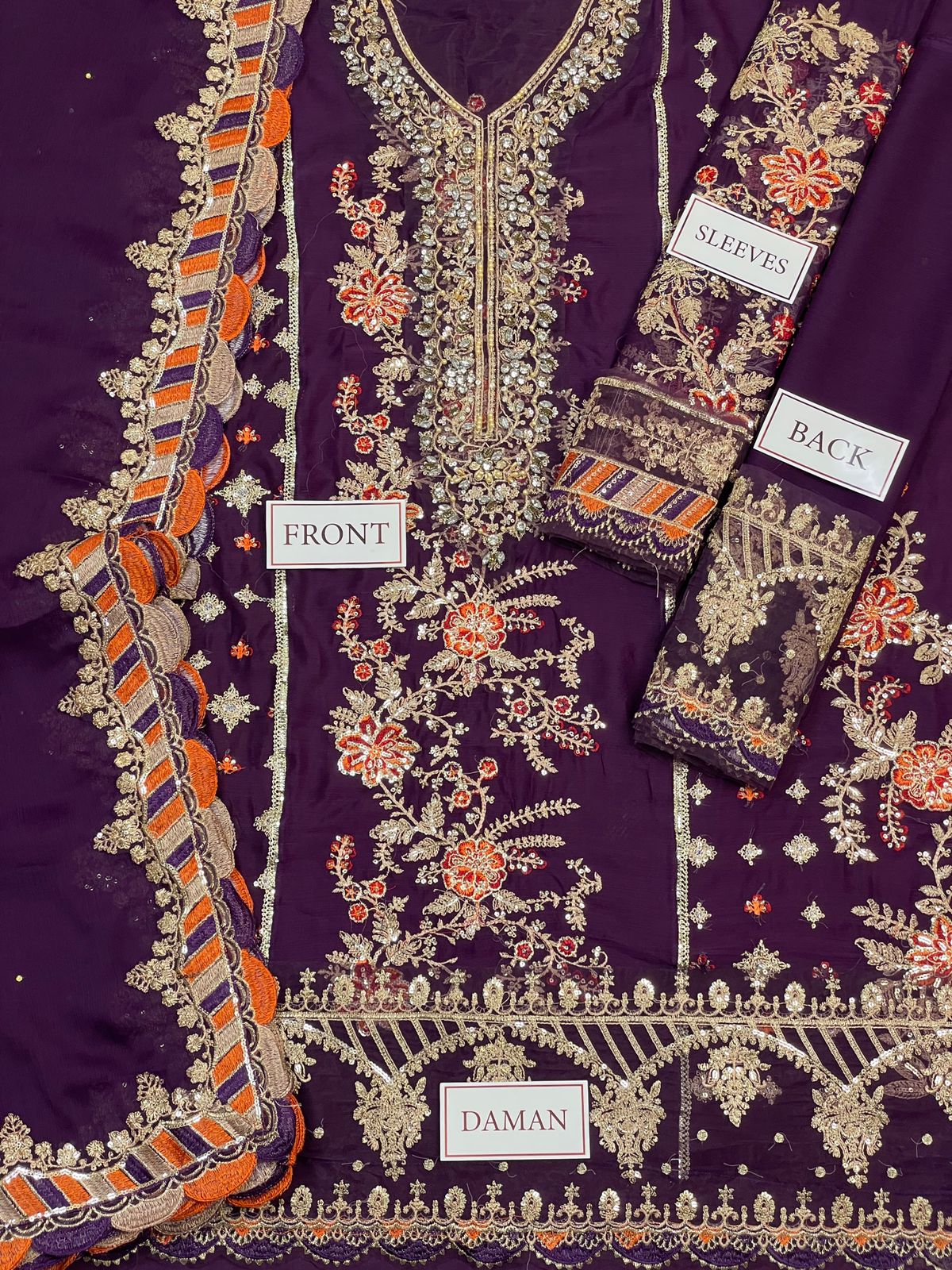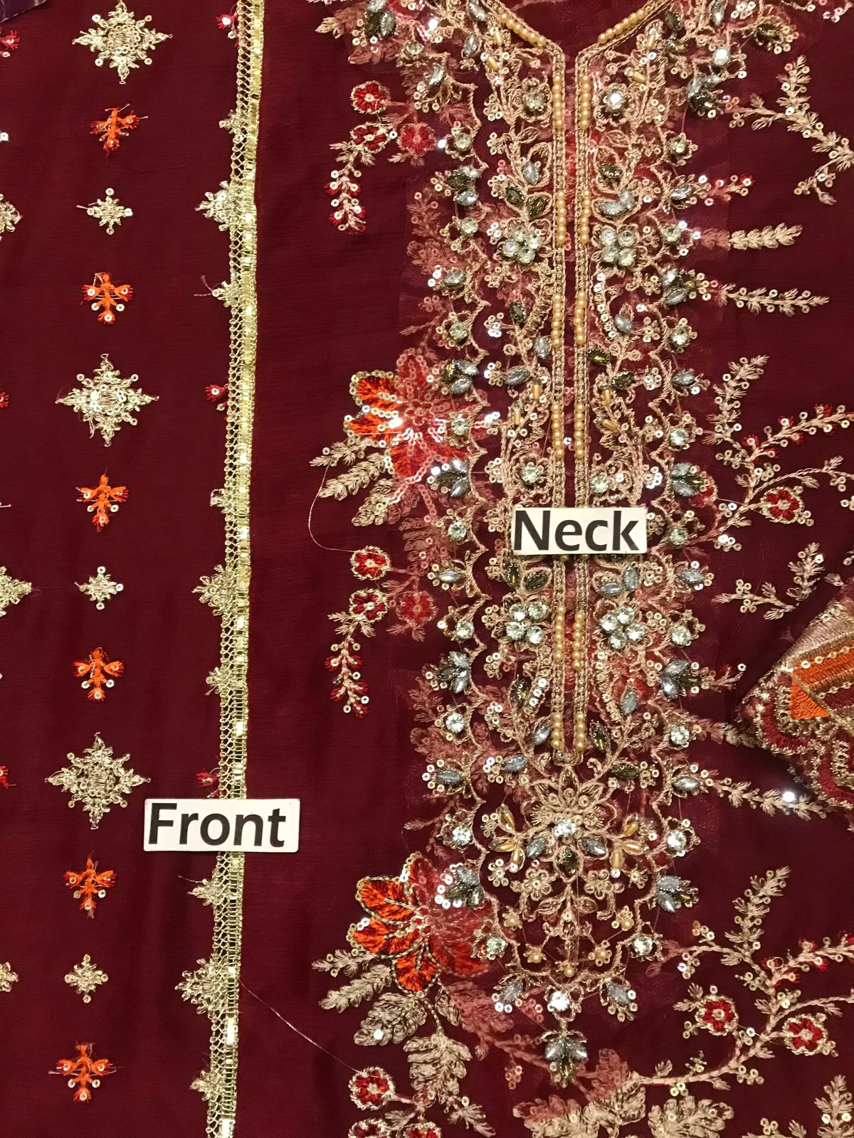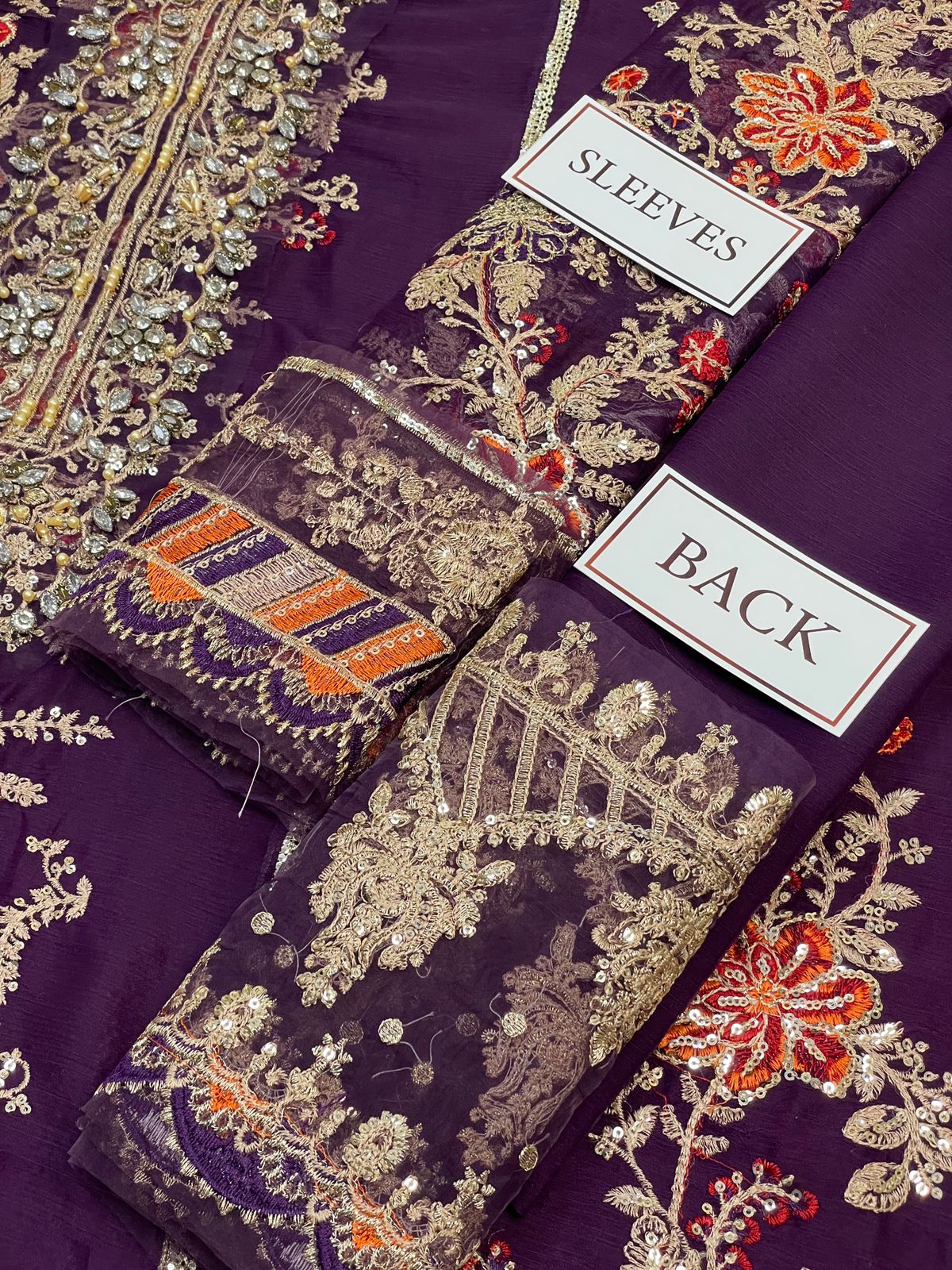 Fully Heavy Embroidery Semi pure Chiffon Front