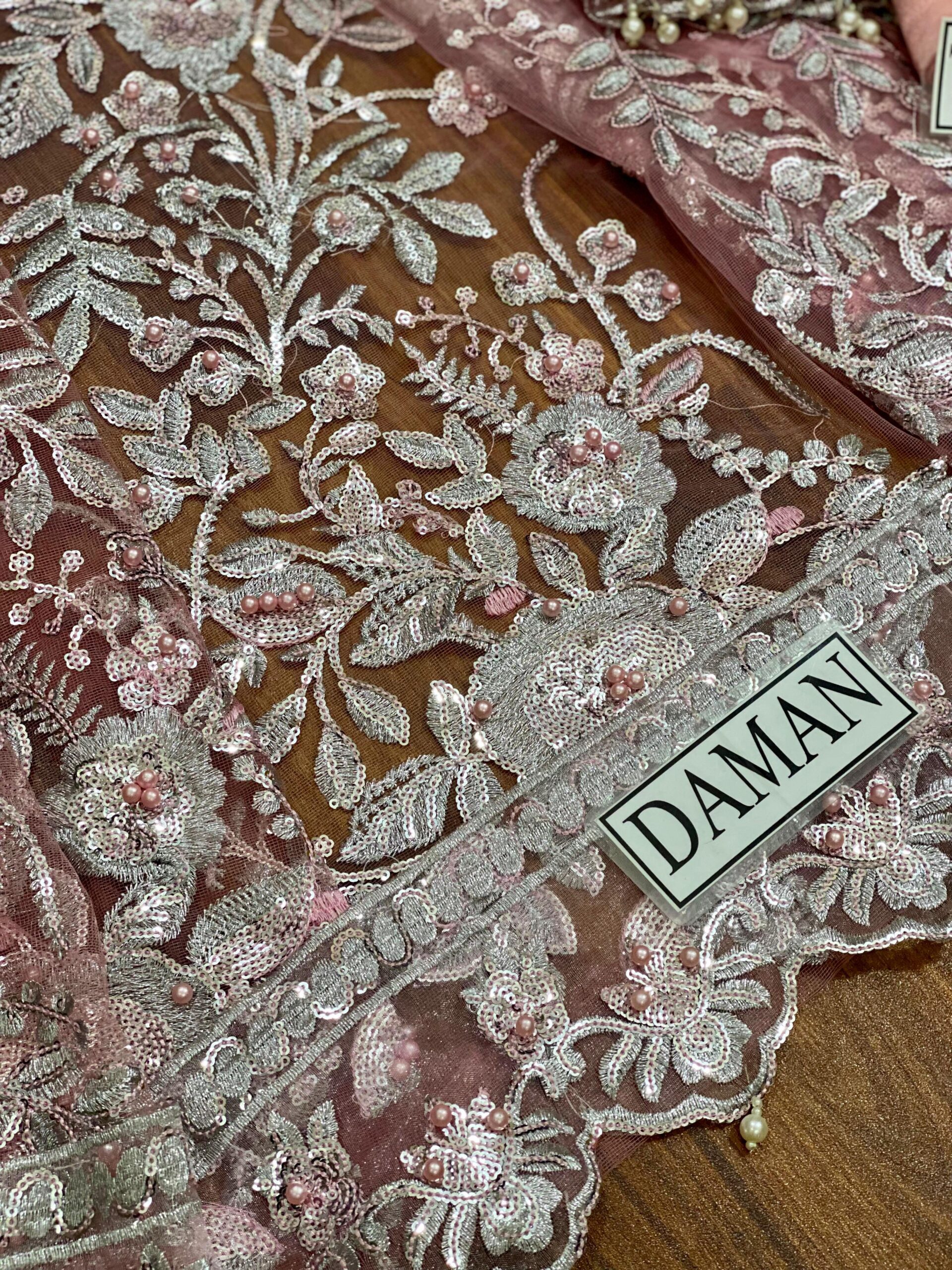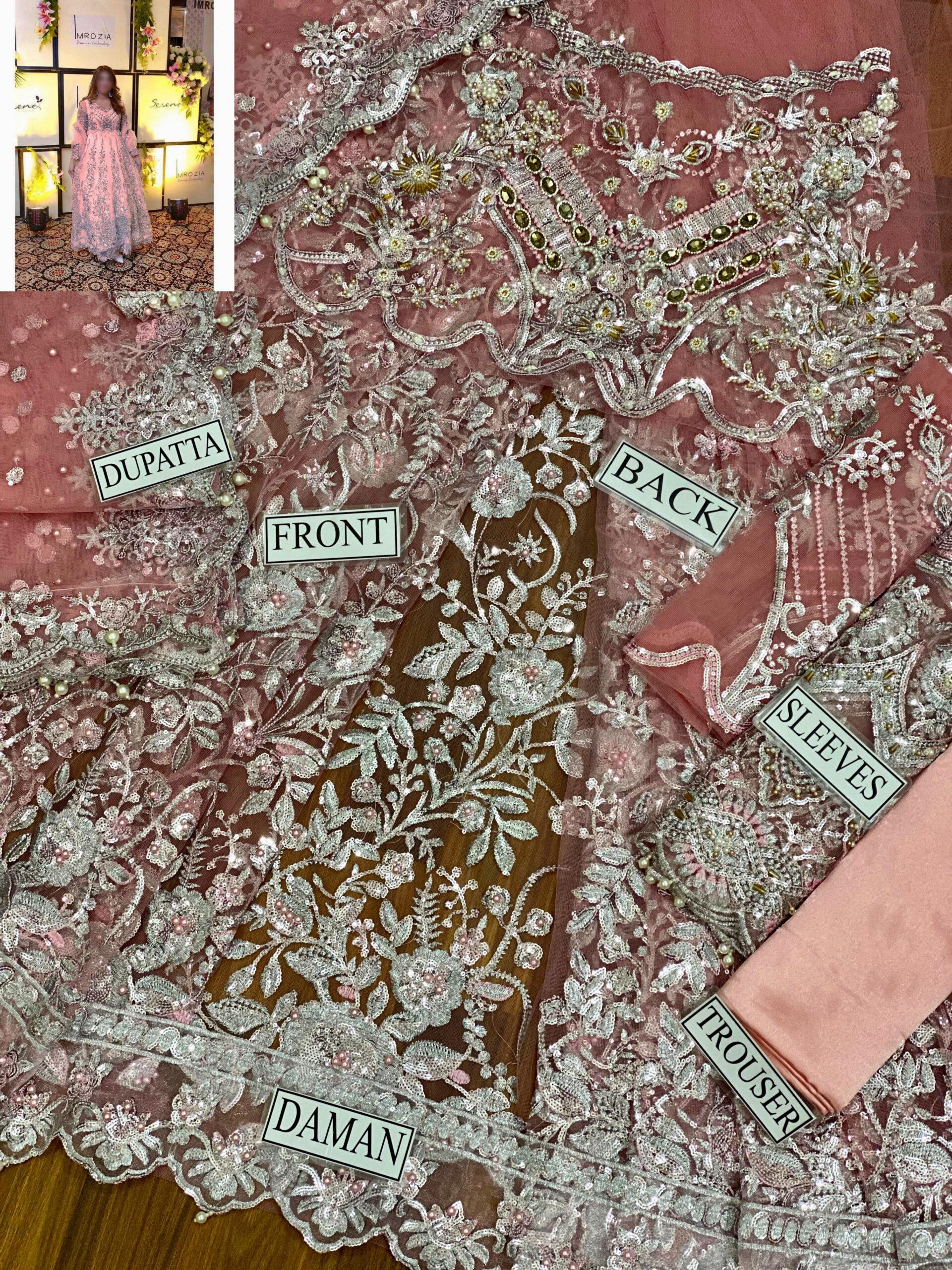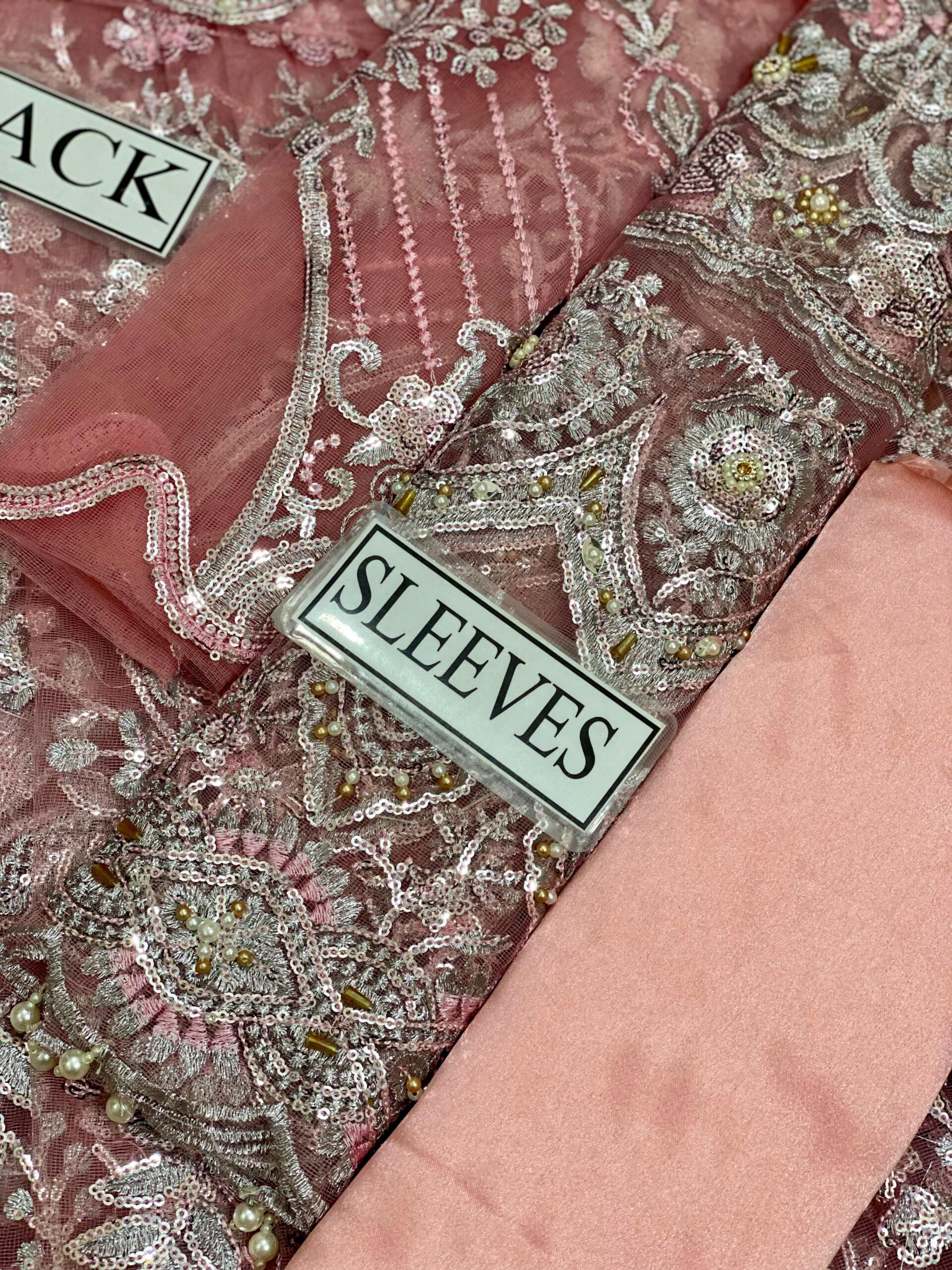Body (Front & Back): Heavy embroidery with attached heavy adda work & stone work