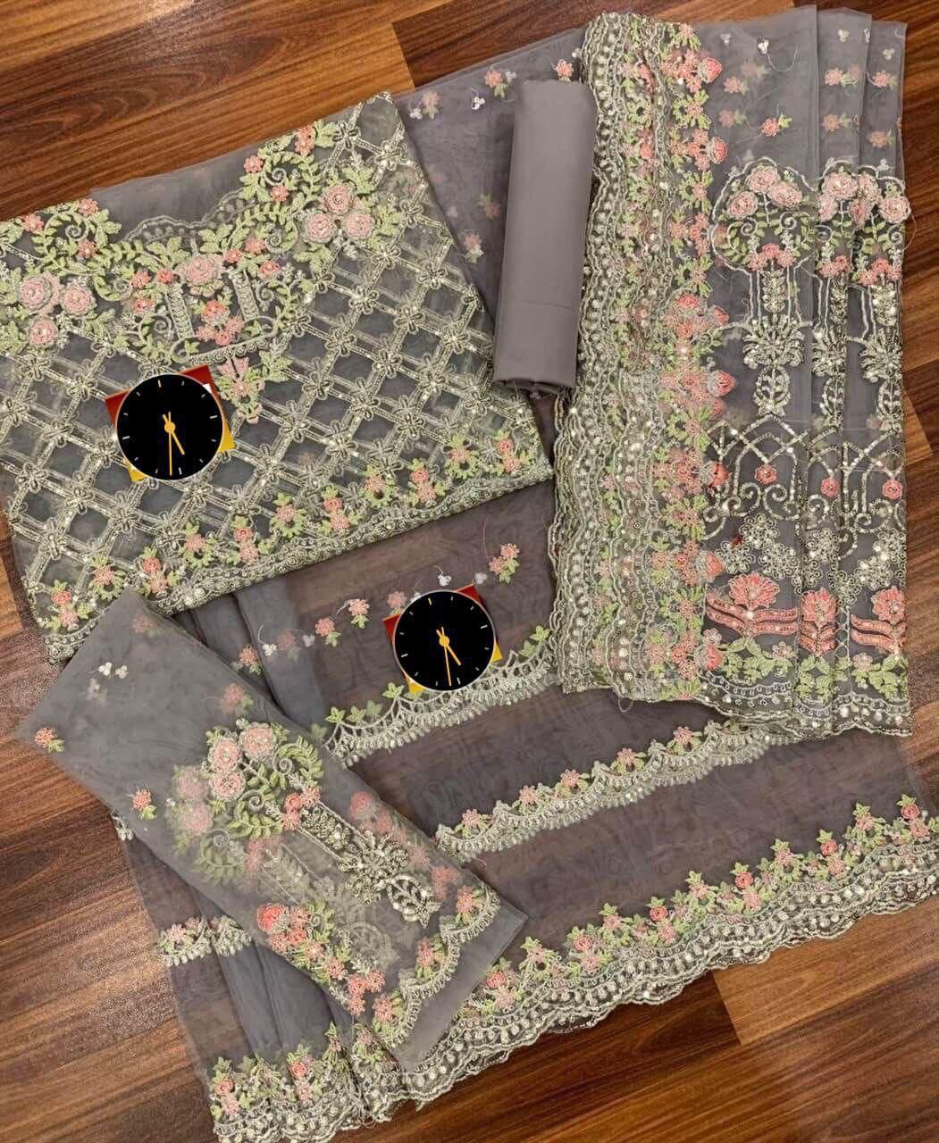 net fully heavy embroidered spengle work front body with 3d flower attach