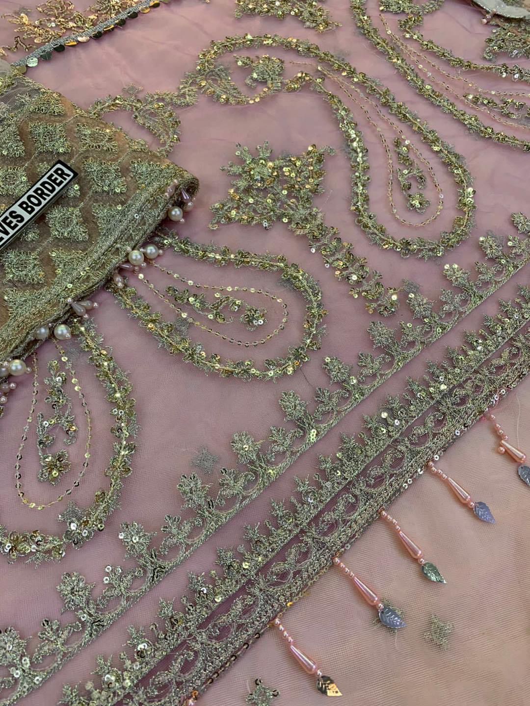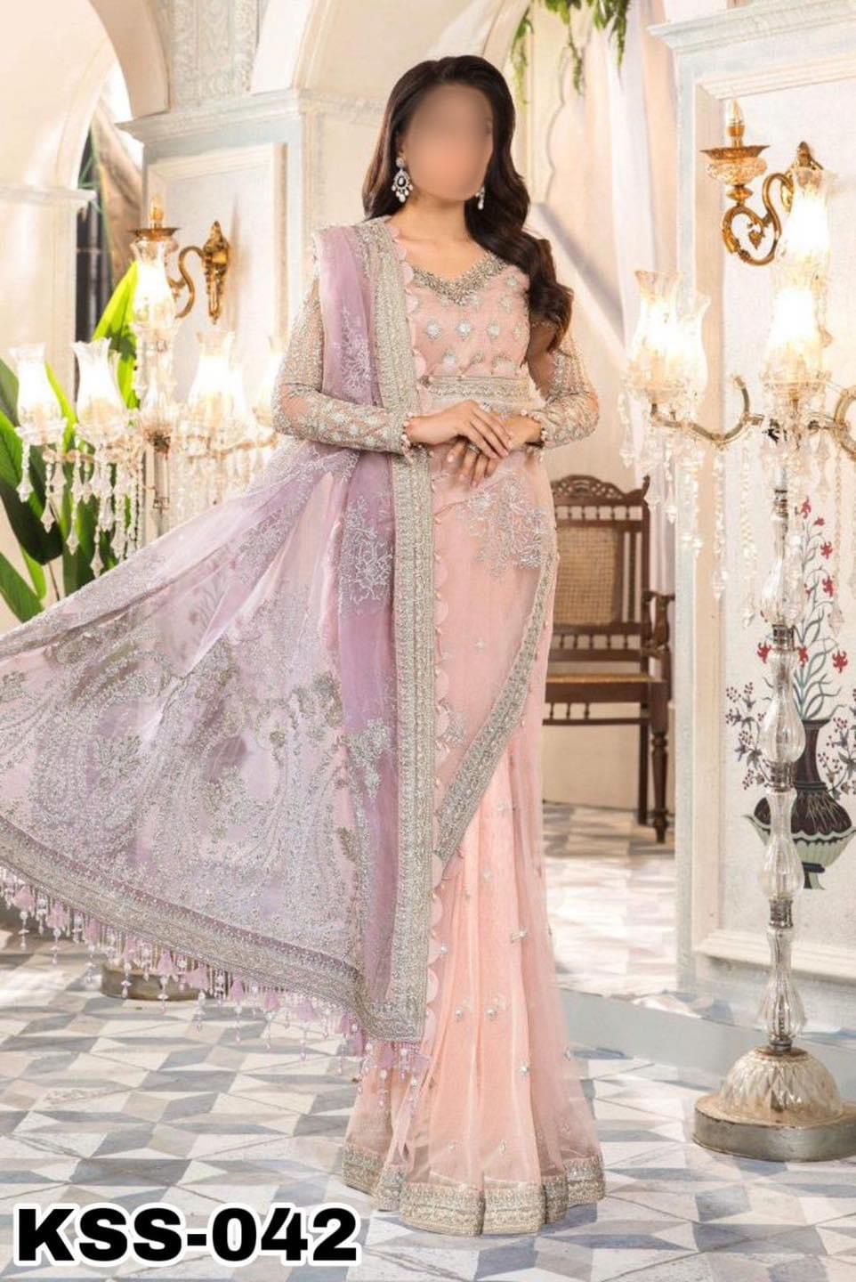 â—ŹFULL SAREE HEAVY EMBROIDERED with stones handwork & with attached pallu & tassels